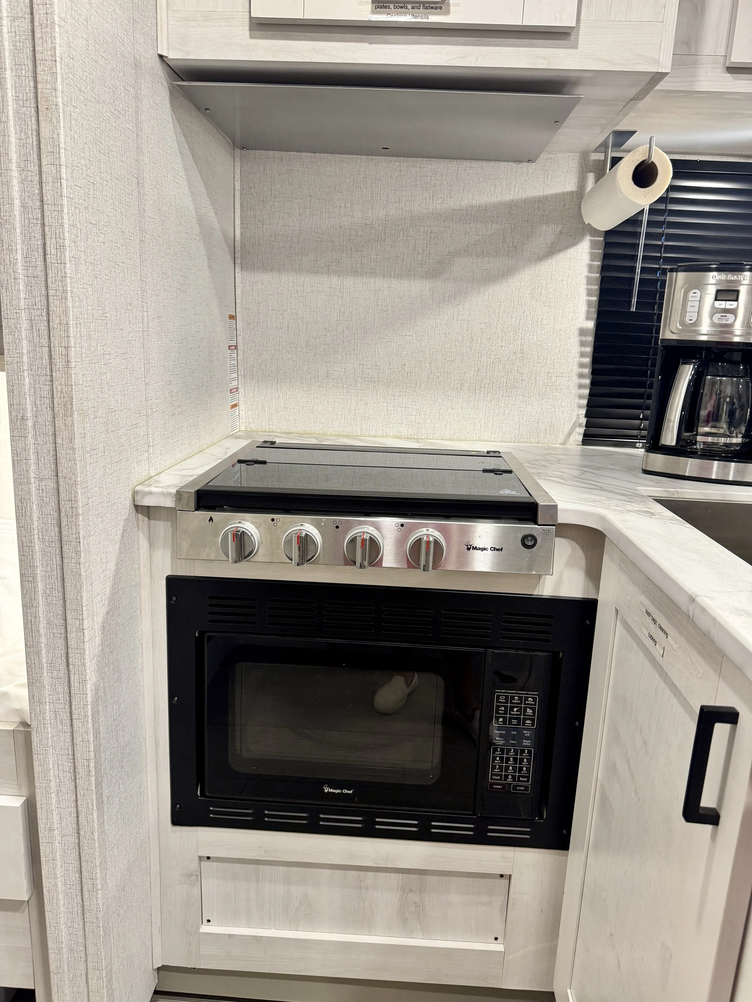 • Fully stocked kitchen with 10.7 cu ft fridge, convection microwave, and U-shaped dinette